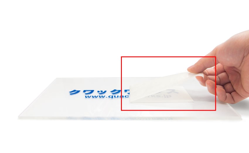 上図の赤枠部分がリタックシート(転写シート)です。リタックシートはカッティングシートを施工面に貼り付ける際に、カッティングシートのデザインがバラけないように一時的に使う為のシートで弱粘着力です。余程特殊な壁紙でない限り、このリタックシートを剥がす際に壁紙が破れたり剥がれたりすることはありません。