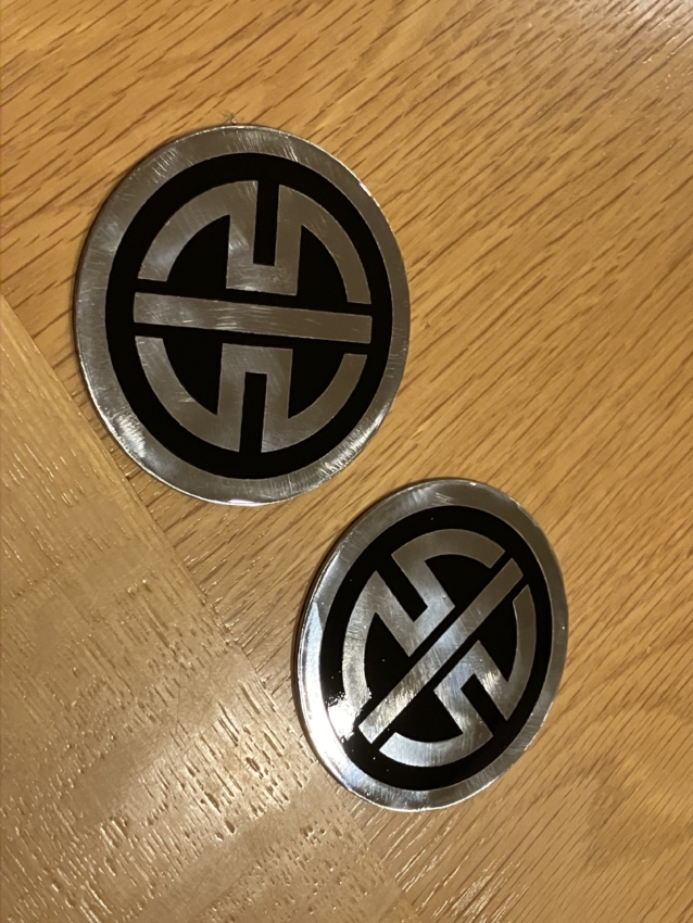 3:エッチング加工→スミ入れ→ウレタンコートを施工し、完成したエンブレム