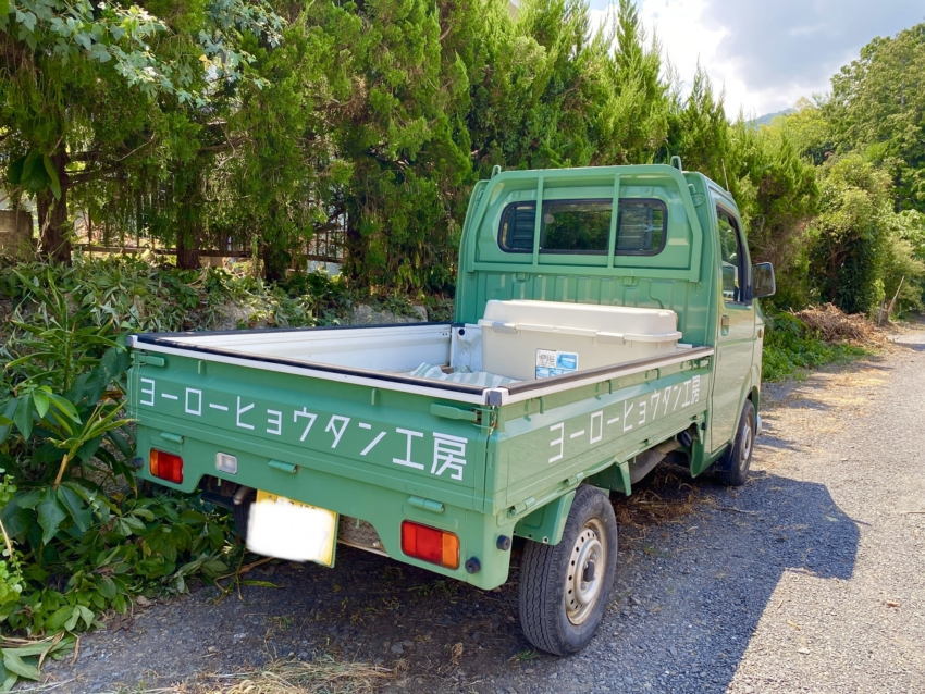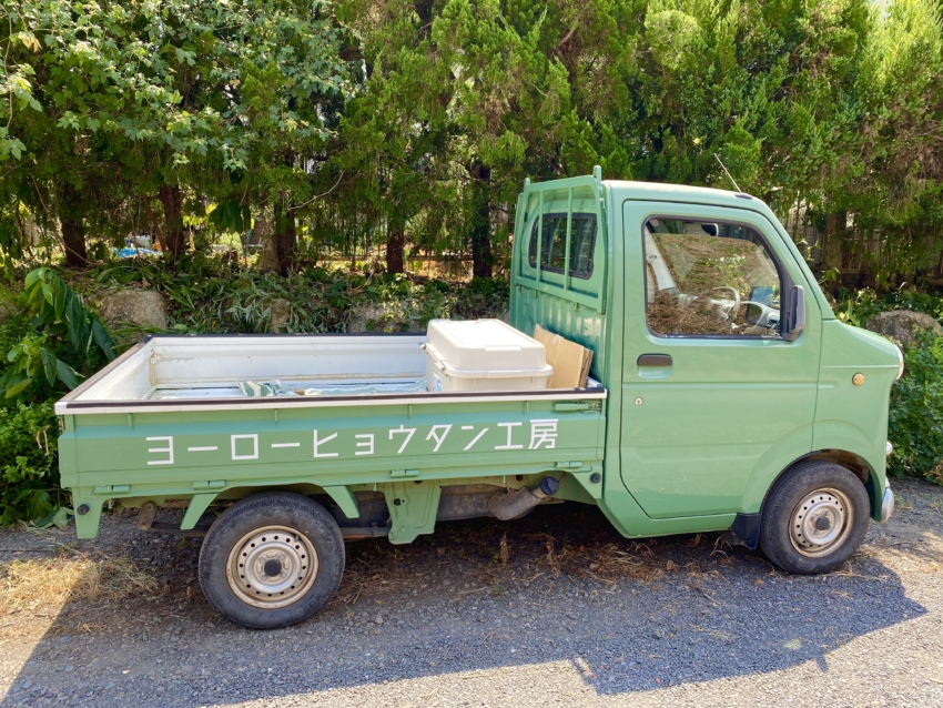 軽トラックのボディに工房の名前のカッティングステッカー!