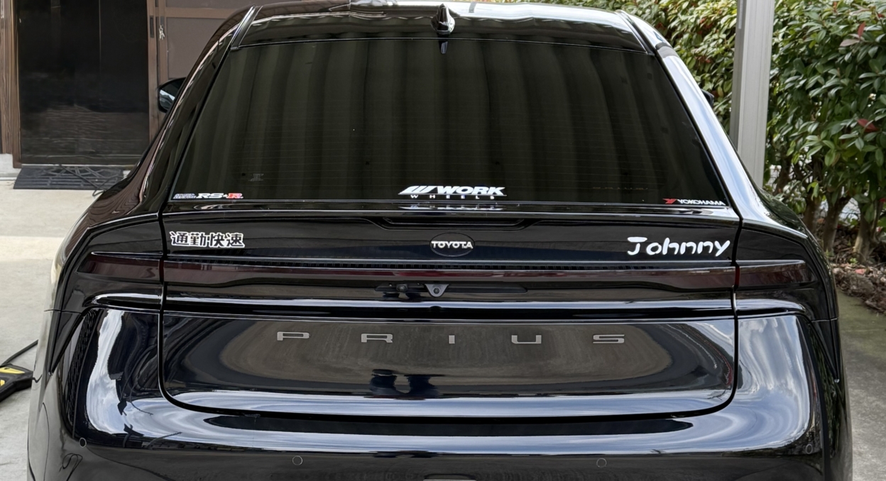 車の後方に貼るカッティングステッカーを制作いたしました!右側にある、白色でほんわかした丸い字体の「Johnny」というロゴ…ドライバーさんが「ジョニー」という愛称のかたでいらっしゃるのかな?それとも愛車を「ジョニー」と呼んでいらっしゃるのかな?と妄想がふくらみ、ニンマリしてしまいました^^お客様の「イメージ通りに貼り付けられました。貼り付けも素人でも簡単でした」とのコメントも、弊社スタッフ一同大変うれしく思っております。これからもより素敵になった愛車で、ドライブなどをお楽しみくださいね。このたびのご注文を誠に、ありがとうございました!