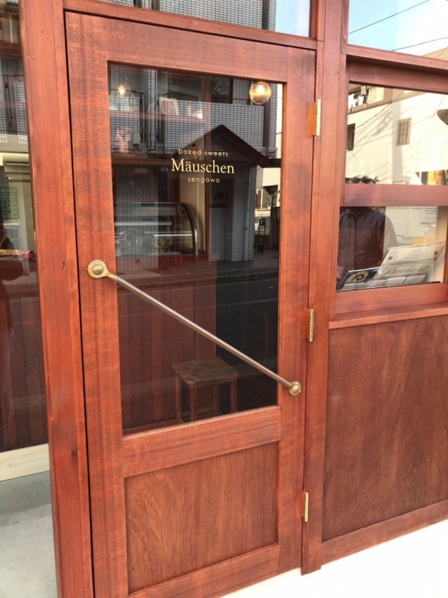 アンティーク調のドアのガラス面に、ゴールドの文字を使用しておしゃれに仕上がっていますね。