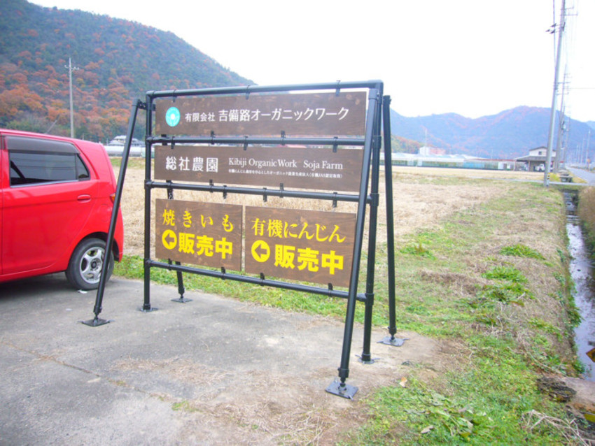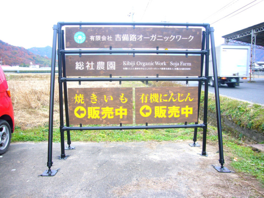 今回は、吉備路オーガニックワーク様から屋外に設置する案内看板用と、会社の看板としてカッティングシートのご注文をいただきました。