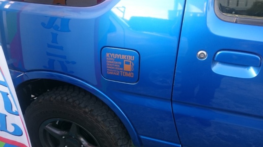 今回は、自動車の給油口の扉に貼るステッカーをカッティングシートで製作させていただきました。ありがとうございます。