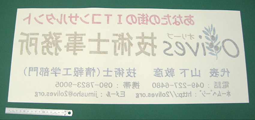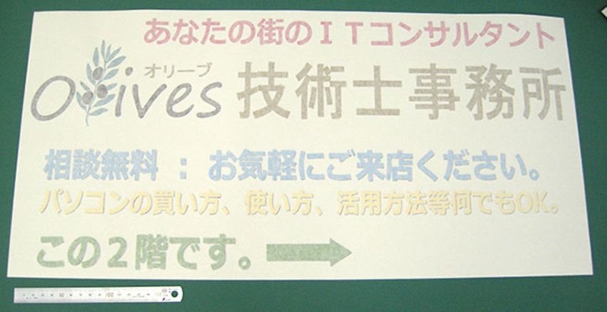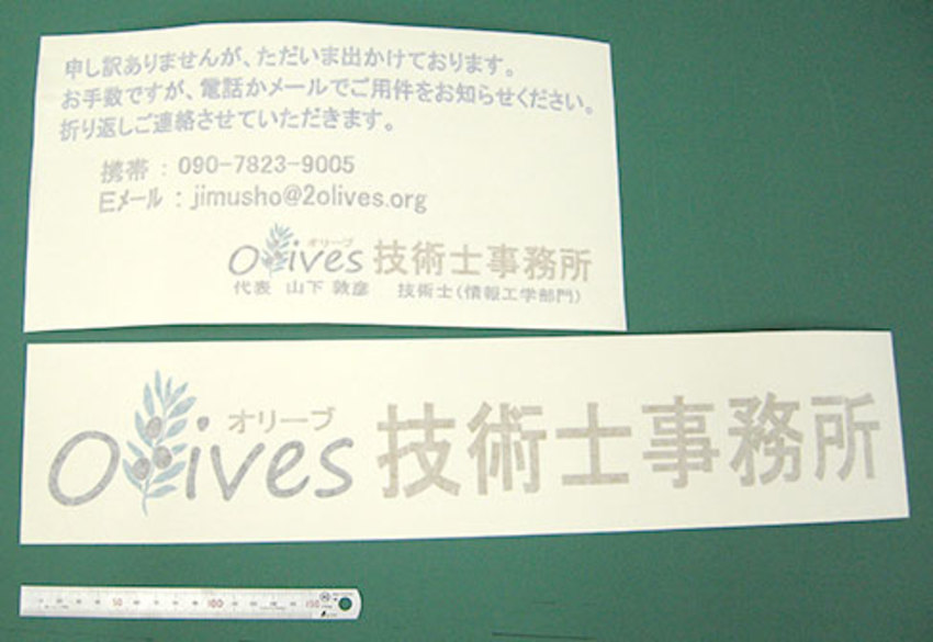 さて今回は、そんなパソコンの便利な機能をフルに活用させてくれる、技術コンサルタント様から、社名や案内などのカッティング用シートの製作依頼を頂きました。ありがとうございます。