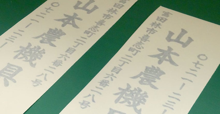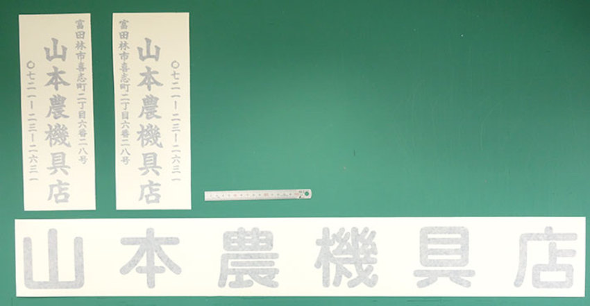 皆さんこんにちは。今回は、農機具店様から、店名やお電話番号のカッティング用シートのご依頼を頂きました。ありがとうございます。