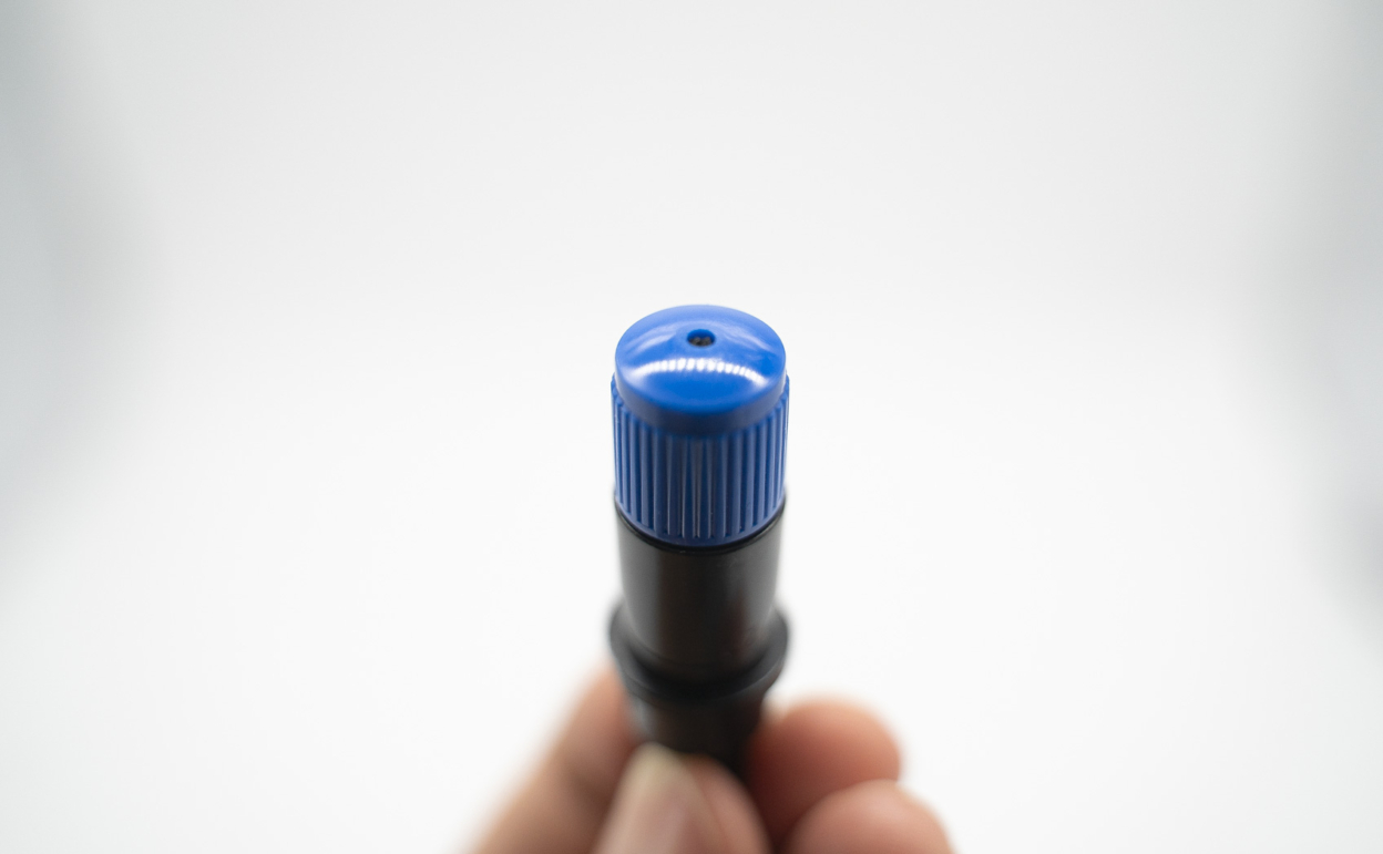 写真を見ると「0.1mmはともかく0.25mmならカットできるのでは?」と感じられた方もいらっしゃるかと思いますが、残念ながら答えはノーです。シャーペンの先端に飛び出ているシャーペンの芯と太さを比較してみてください。このシャーペンの芯より小さい粘着面でカッティングシートを作って貼ると、少し擦れただけで剥がれてしまいます。