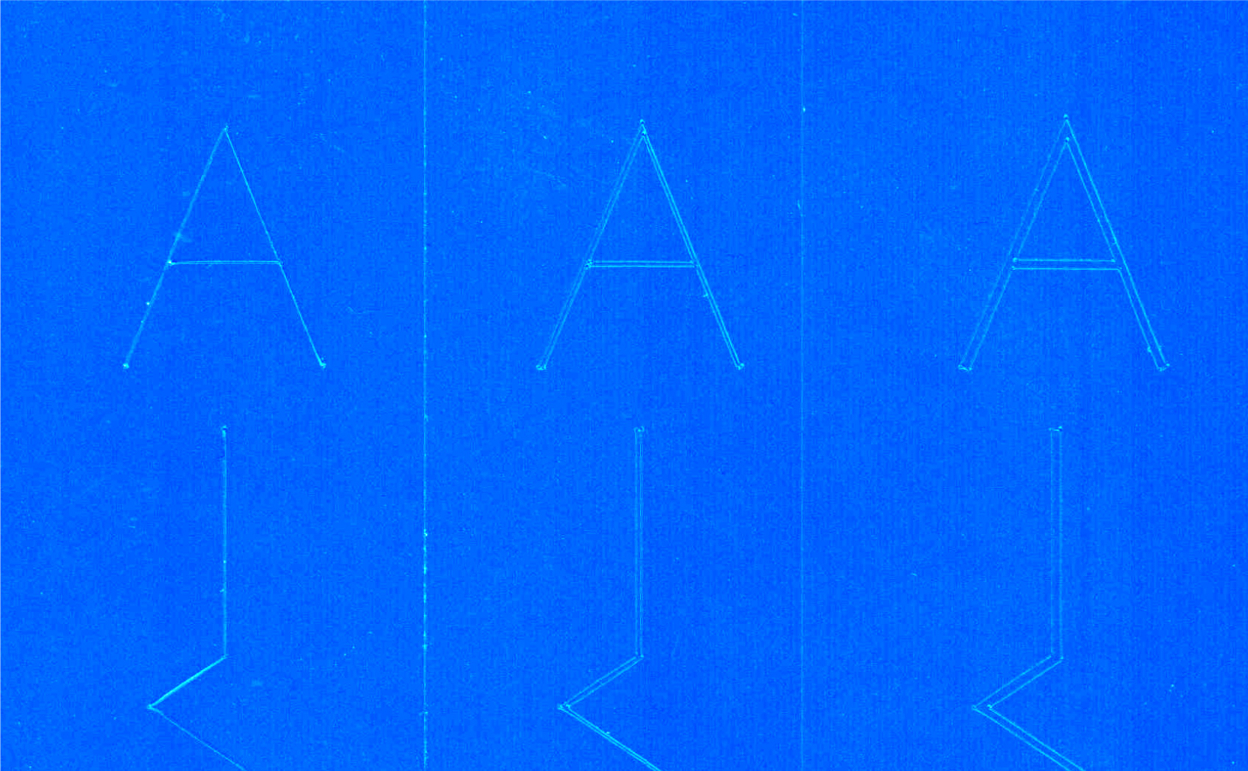 カットしたままの状態全体の写真では0.1mm、0.25mmはほぼ1本の線にしか見えないことがわかります。